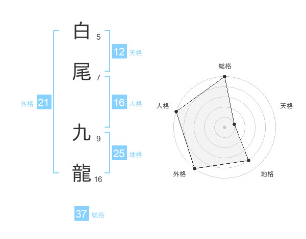 白尾 九龍さんを姓名の画数から五運を鑑定