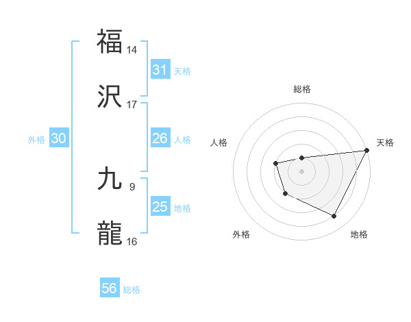 福沢 九龍さんを姓名の画数から五運を鑑定