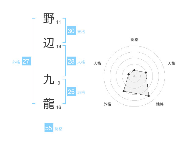 野辺 九龍さんを姓名の画数から五運を鑑定