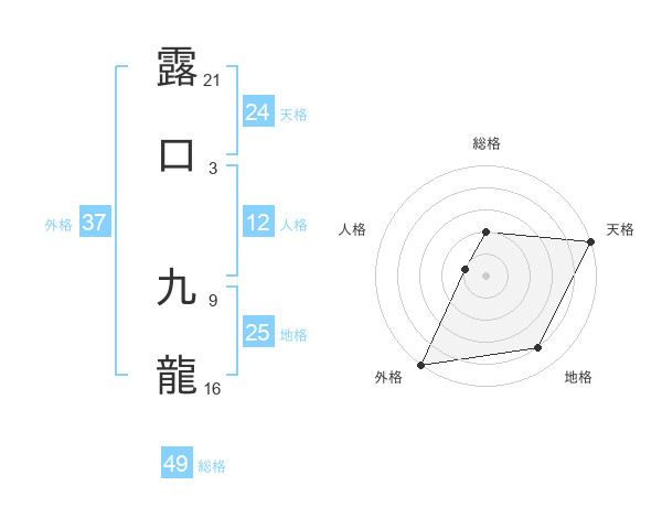 露口 九龍さんの外格は37画の5点!