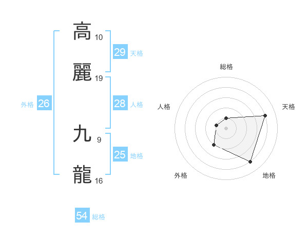 高麗 九龍さんを姓名の画数から五運を鑑定