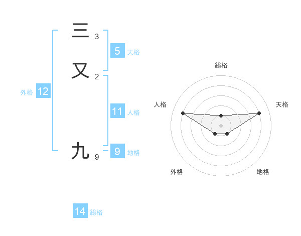 三又 九さんの総格は14画の1点!