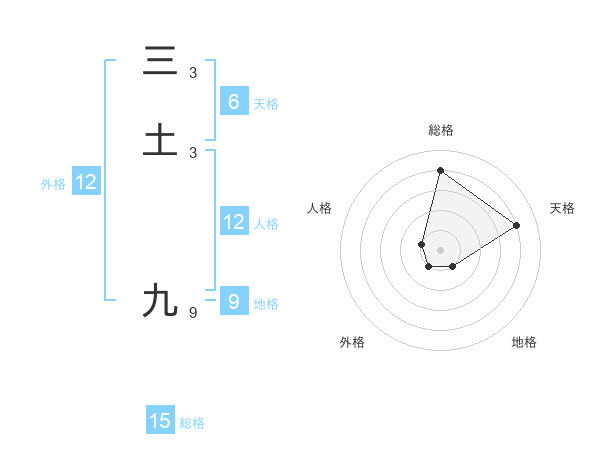 三土 九さんの総格は15画の4点!