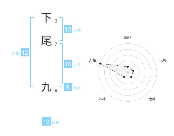 下尾 九さんの総格は19画の1点!