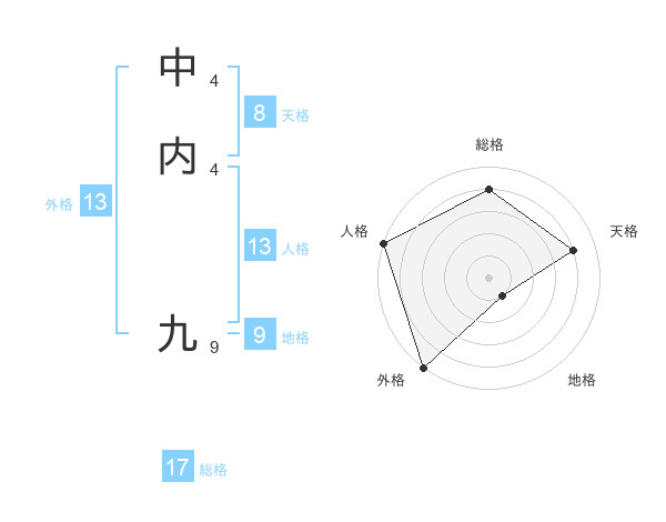 中内 九さんの外格は13画の5点!