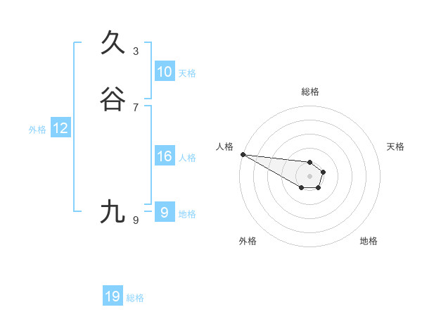 久谷 九さんの総格は19画の1点!