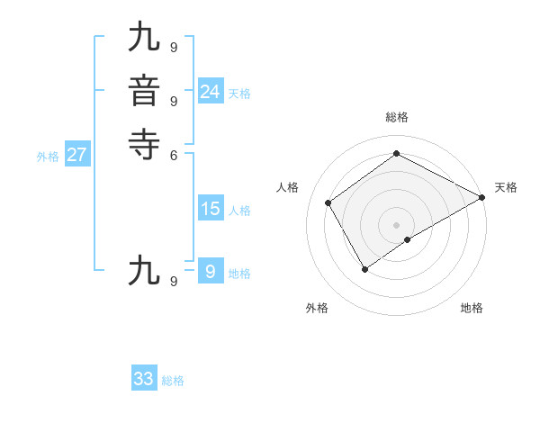 九音寺 九さんの総格は33画の4点!