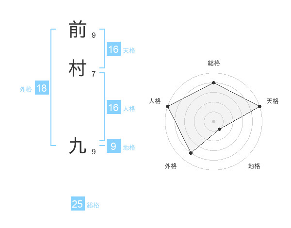 前村 九さんの天格は16画の5点!