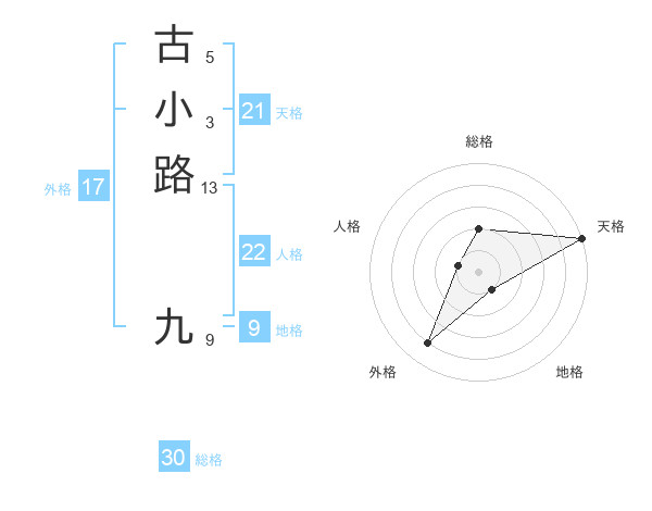 古小路 九さんの総格は30画の2点!
