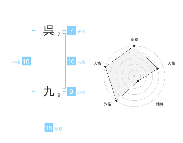 呉 九さんの外格は16画の5点!