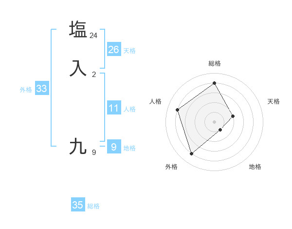 塩入 九さんの外格は33画の4点!