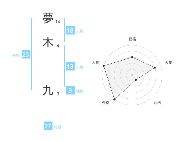 夢木 九さんの外格は23画の5点!