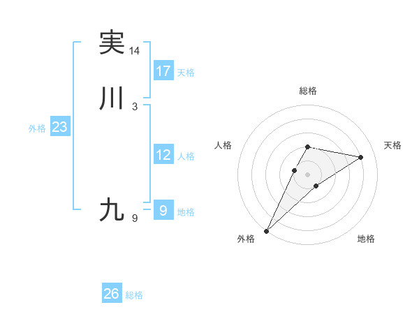 実川 九さんの天格は17画の4点!