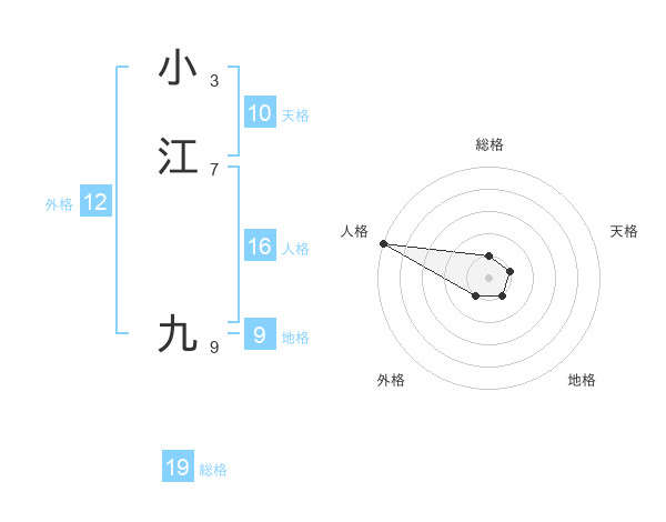 小江 九さんの総格は19画の1点!