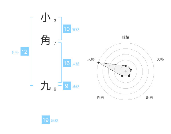 小角 九さんの総格は19画の1点
