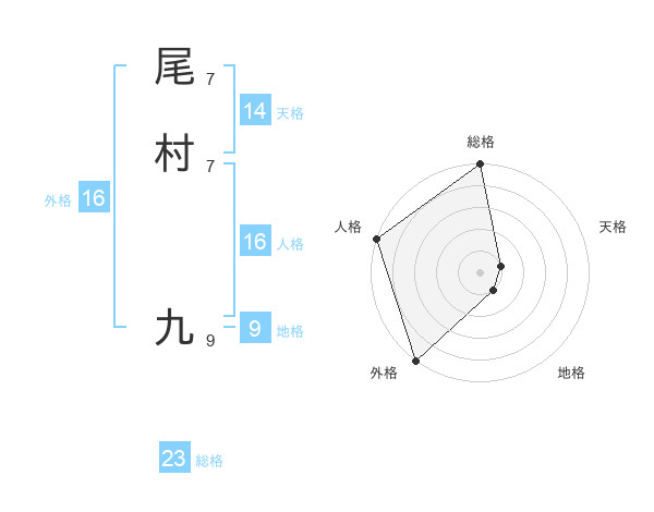 尾村 九さんの外格は16画の5点!