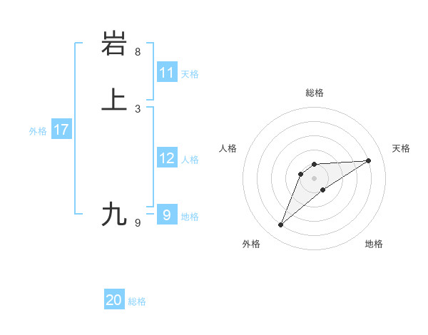 岩上 九さんの総格は20画の1点!
