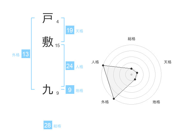 戸敷 九さんの外格は13画の5点!