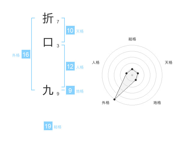 折口 九さんの総格は19画の1点!