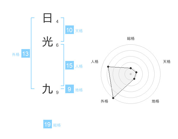 日光 九さんの外格は13画の5点!