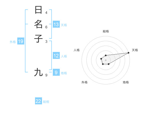 日名子 九さんの天格は13画の5点!