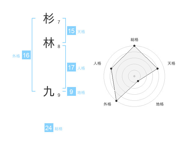 杉林 九さんの総格は24画の5点!