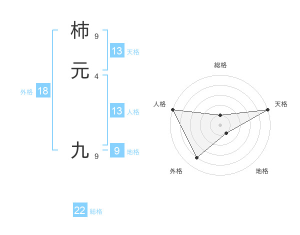 柿元 九さんの天格は13画の5点!
