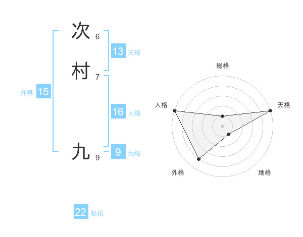 次村 九さんの天格は13画の5点!