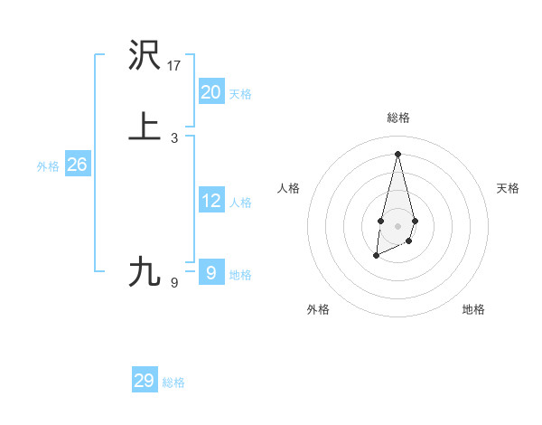 沢上 九さんの総格は29画の4点!