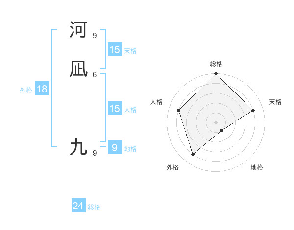 河凪 九さんを姓名の画数から五運を鑑定