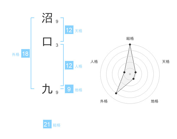 沼口 九さんの総格は21画の5点!