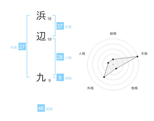 浜辺 九さんの天格は37画の5点!
