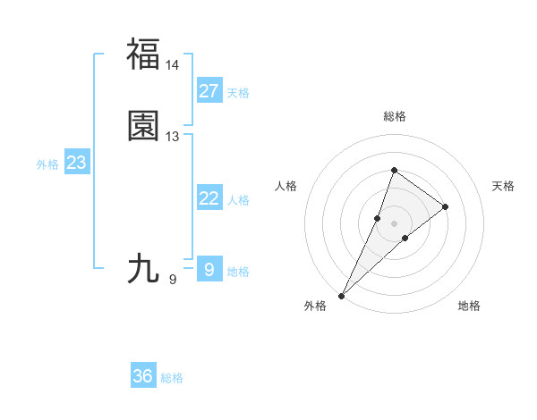 福園 九さんの外格は23画の5点!