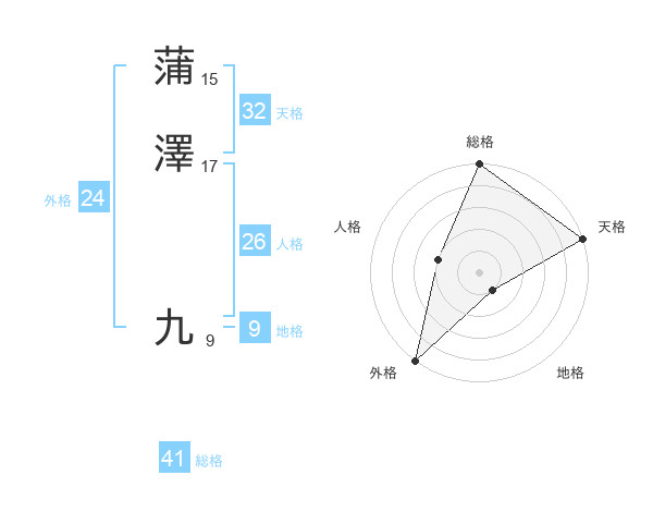 蒲澤 九さんの総格は41画の5点!