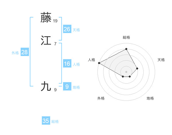 藤江 九さんの総格は35画の4点!