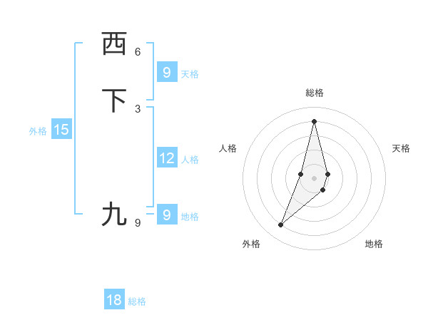 西下 九さんの総格は18画の4点!