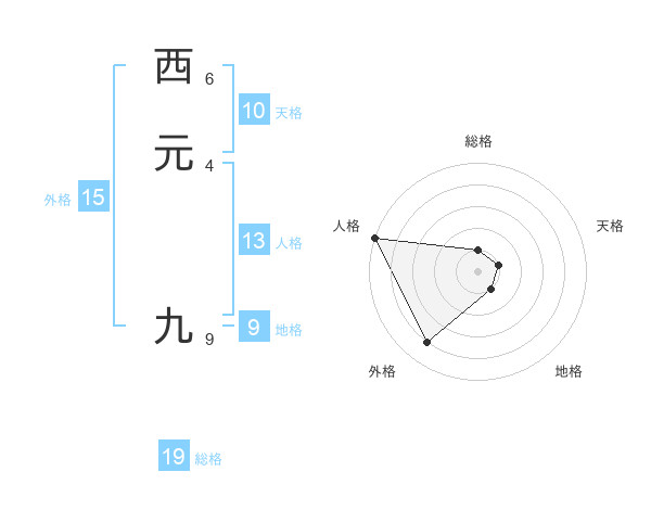 西元 九さんの外格は15画の4点!