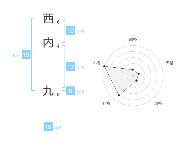西内 九さんを姓名の画数から五運を鑑定