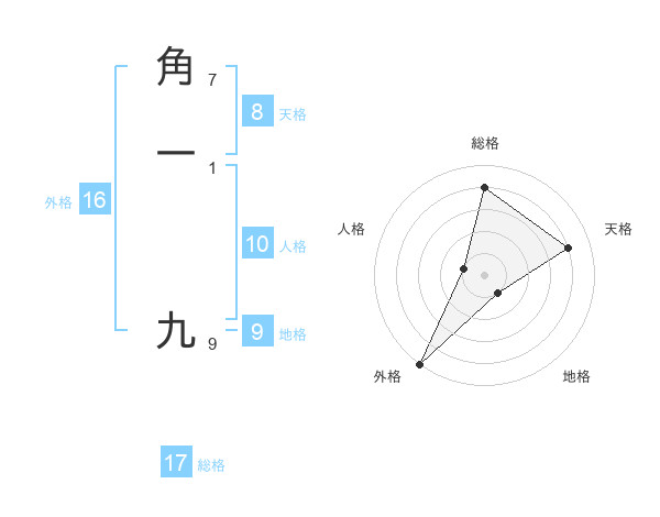 角一 九さんの総格は17画の4点!