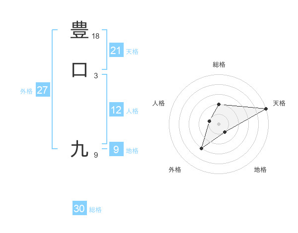 豊口 九さんの天格は21画の5点!