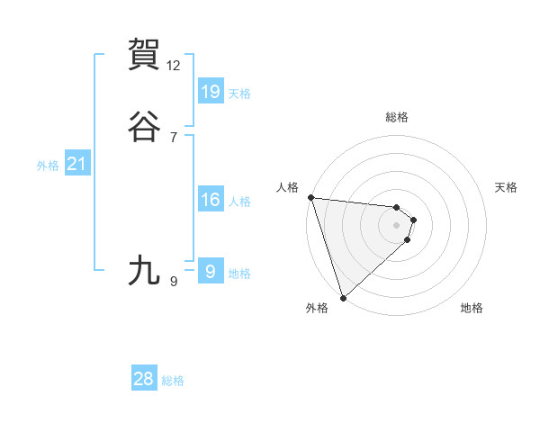賀谷 九さんの外格は21画の5点!