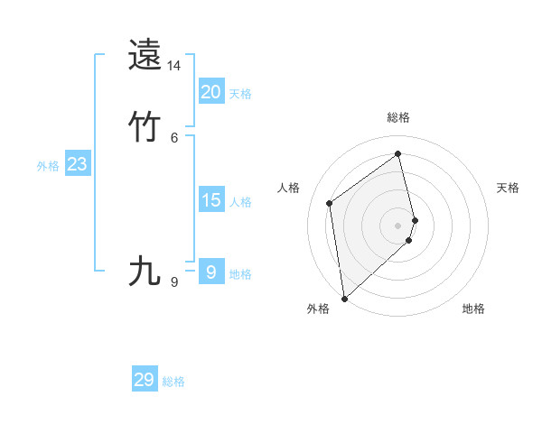 遠竹 九さんの総格は29画の4点!