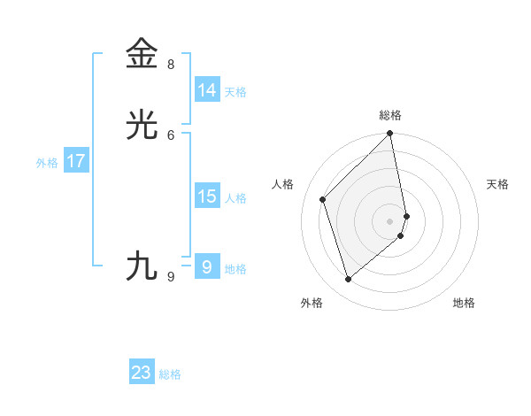 金光 九さんを姓名の画数から五運を鑑定