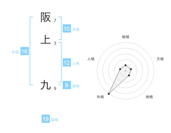 阪上 九さんの外格は16画の5点!
