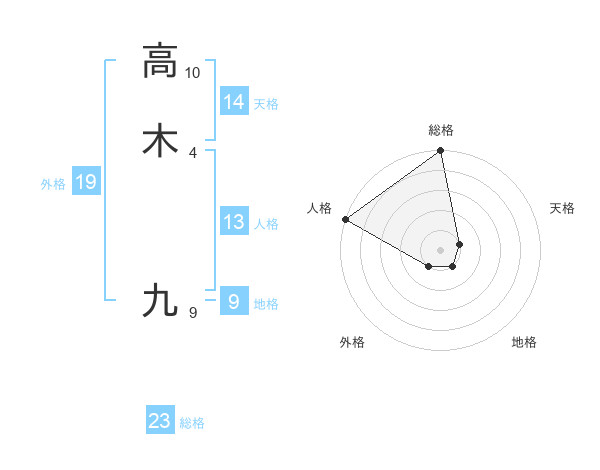 高木 九さんの総格は23画の5点!