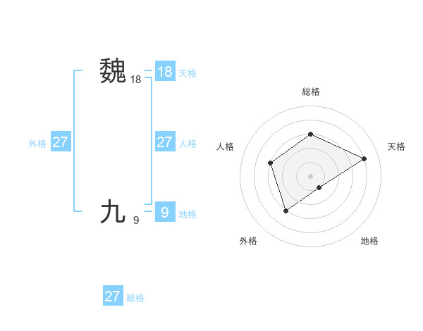 魏 九さんの人格は27画の3点!