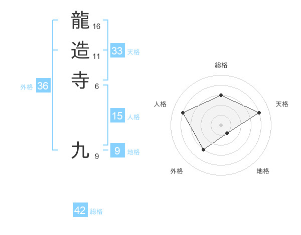 龍造寺 九さんの総格は42画の3点!