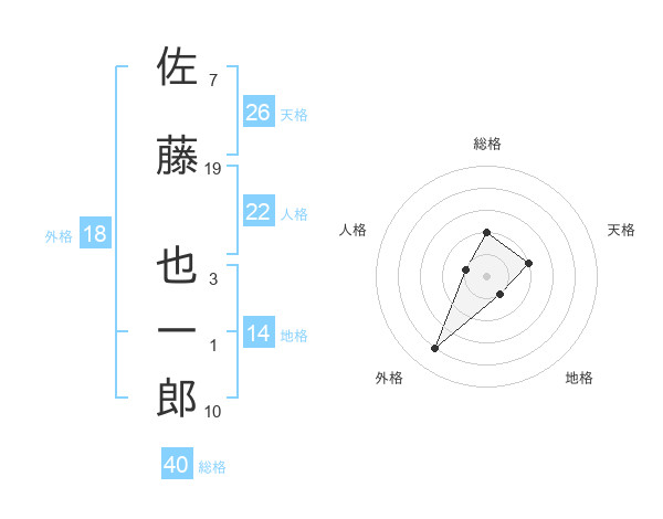 佐藤 也一郎さんの総格は40画の2点!