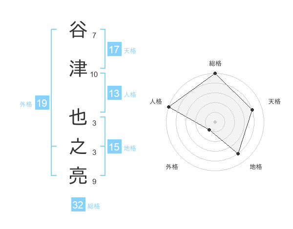 谷津 也之亮さんを姓名の画数から五運を鑑定