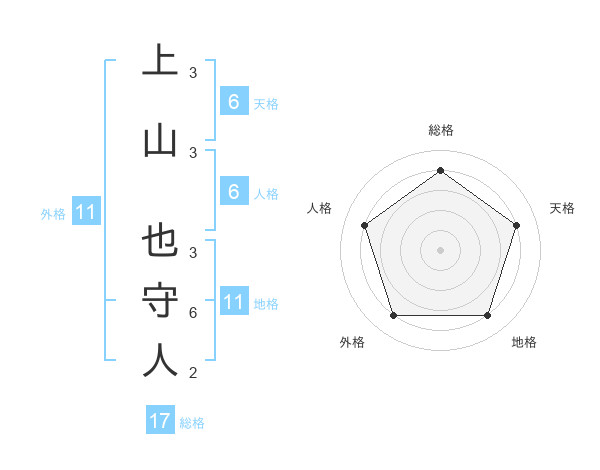 上山 也守人さんの総格は17画の4点!